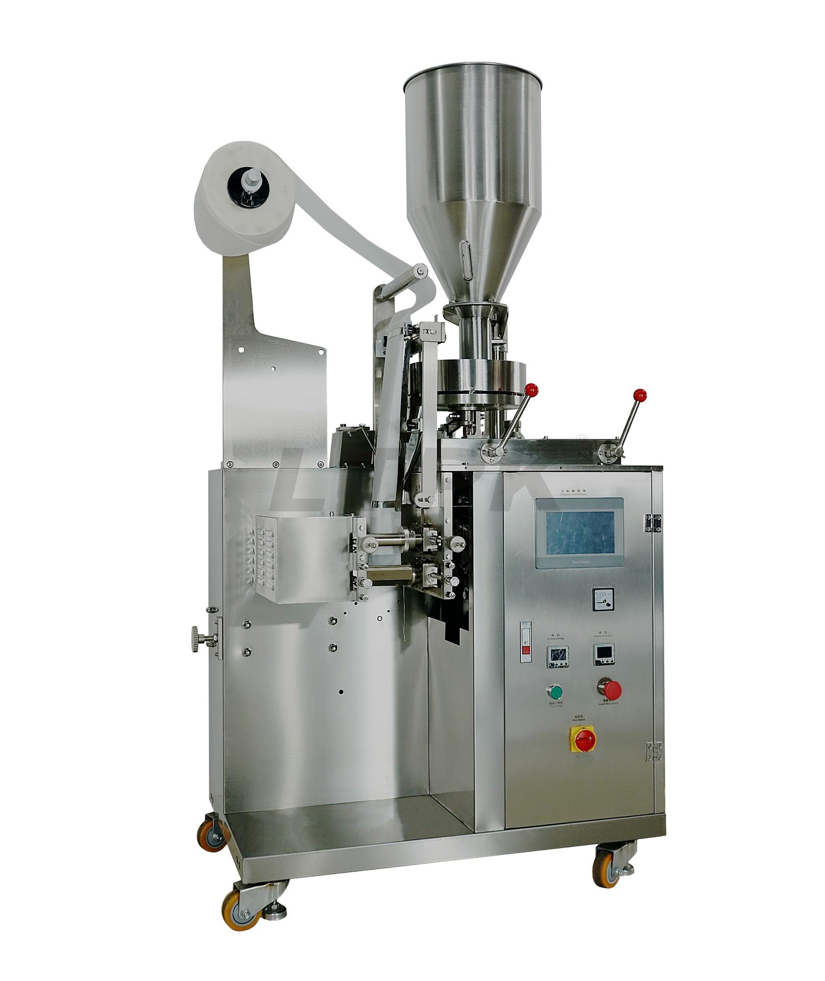 Tea bag with the thread, all the works of bag making, measuring, filling, sealing, cutting and counting can be done automatically.